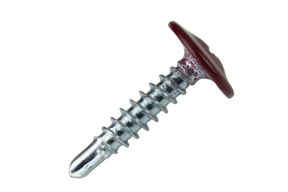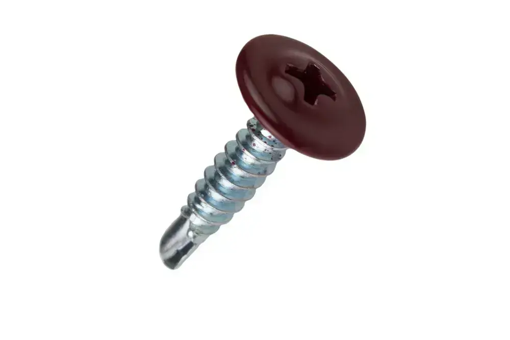 Саморез с прессшайбой 4,2х19 винно-красный RAL3005 со сверлом 100шт.