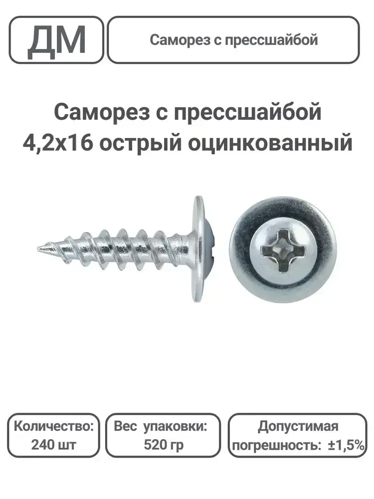 Саморез с прессшайбой оцинкованный острый 4,2х16 240