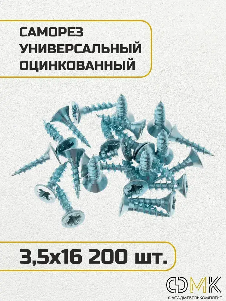 Саморез, шуруп мебельный, оцинкованный универсальный, 3,5*16 мм., 200 шт.