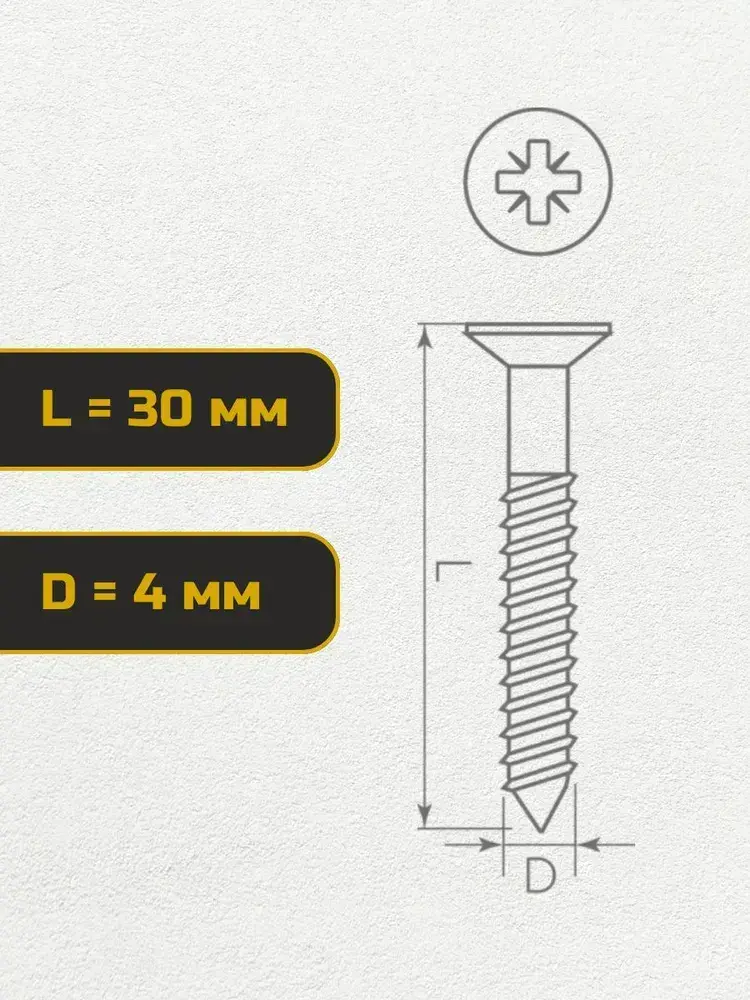 Саморез, шуруп мебельный, оцинкованный универсальный, 4*30 мм., 200 шт.