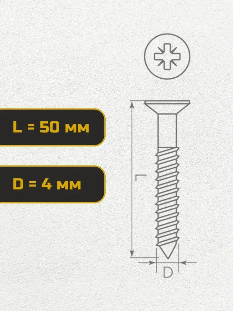 Саморез, шуруп мебельный, оцинкованный универсальный, 4*50 мм., 100 шт.