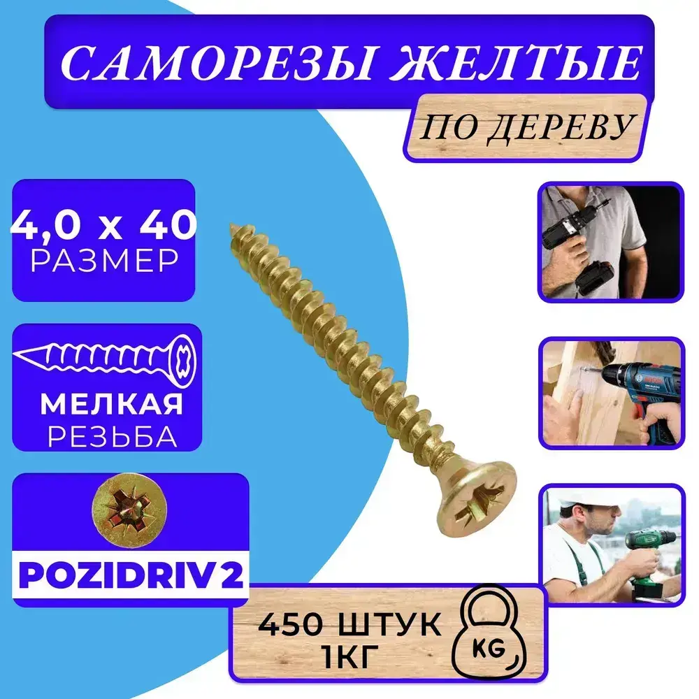 Саморез универсальный 4х60 жёлтый цинк. 1кг