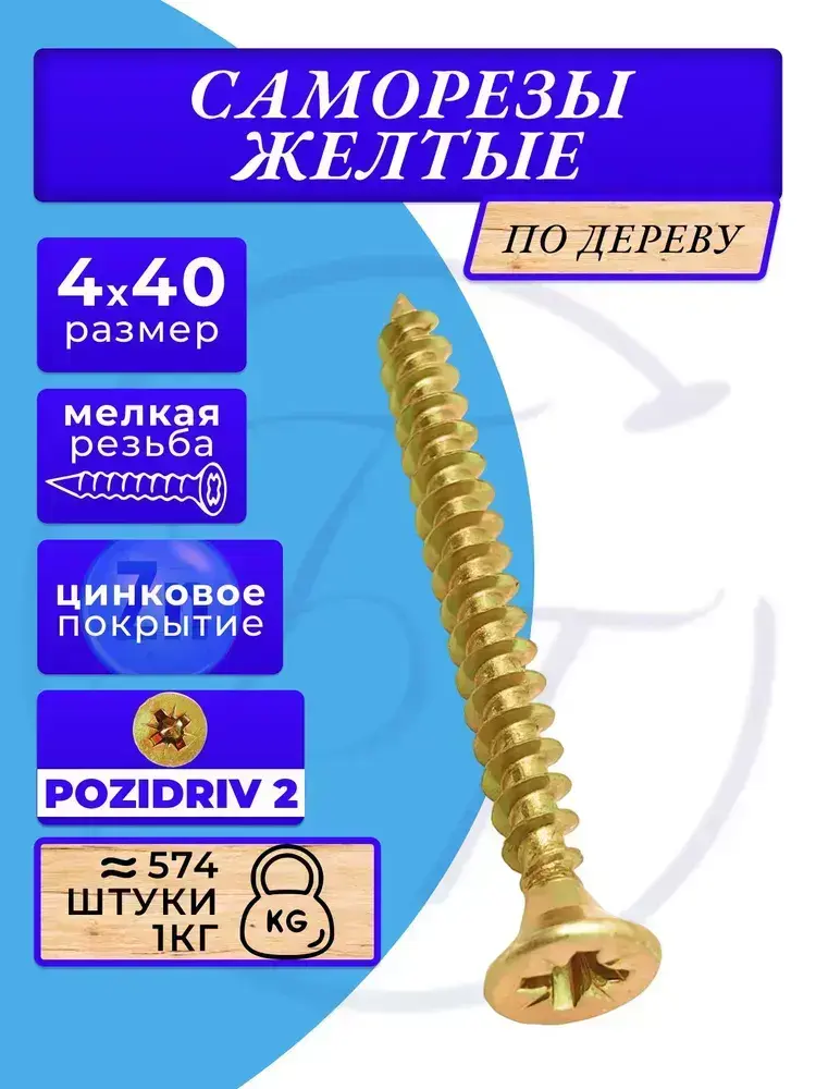 Саморез универсальный 4x40 жёлтый цинк 1кг
