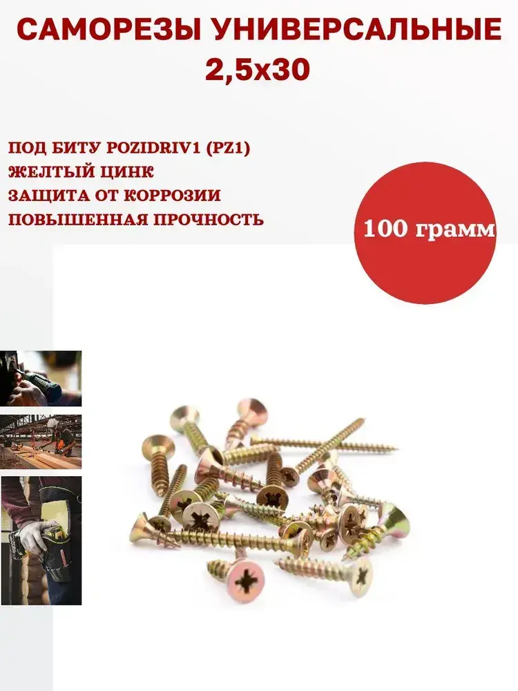 Саморез универсальный желтый 2,5 х 30 мм, 100 грамм, 150 шт