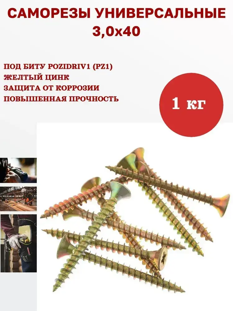 Саморез универсальный желтый 3,0 х 40 мм, 1 кг, 850 шт