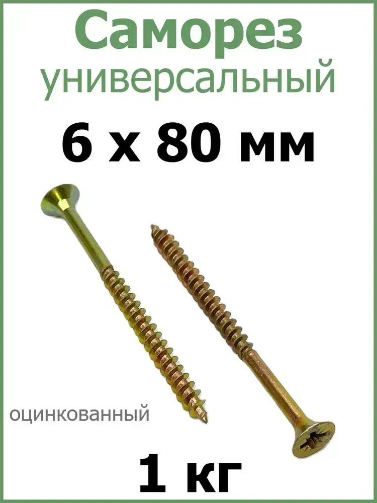Саморез универсальный желтый цинк 6х80 вес 1 кг