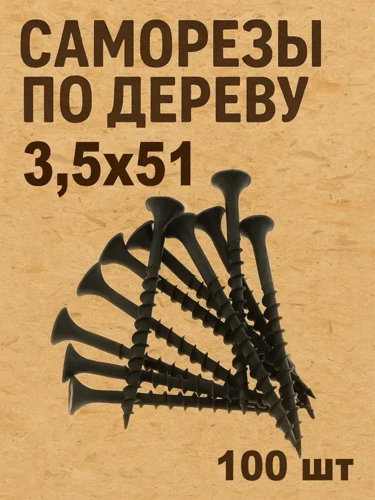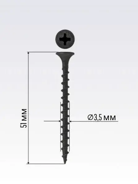 Саморезы черные 3,5х51 мм шурупы по дереву, гипсокартону 100шт