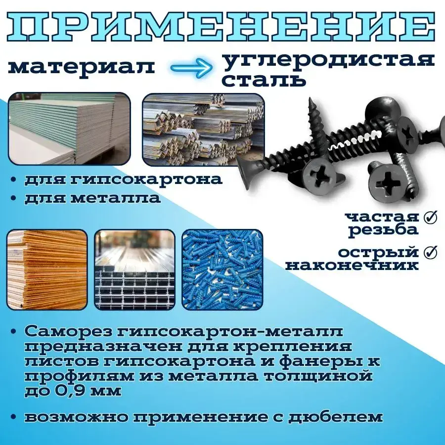 Саморезы гипсокартон металл черные 3.5х32 Крепдил 500 шт