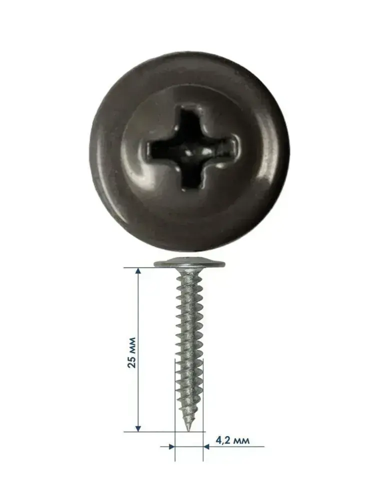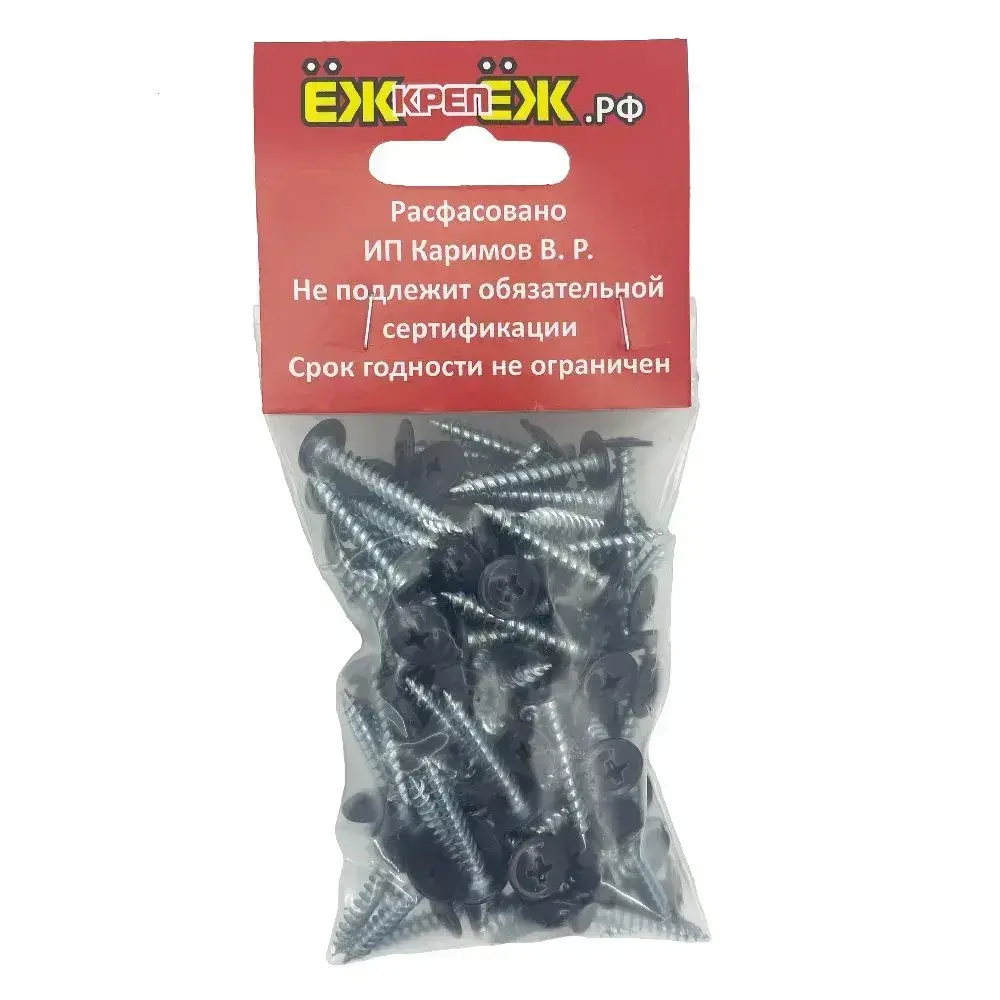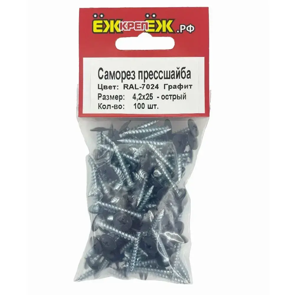 Саморезы крашенные прессшайба 4,2х25 мм острый графит RAL-7024 (100 шт) ЁЖкрепЁЖ.