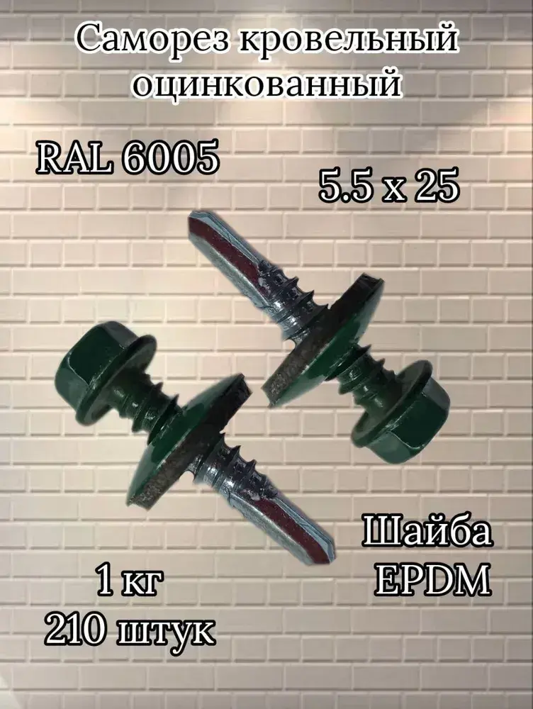 Саморезы кровельные оцинкованные 1 кг, зеленые 5.5х25 мм