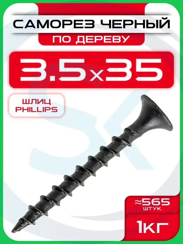 Саморезы по дереву, черные 3,5 х 35 мм (565 шт/1 кг)