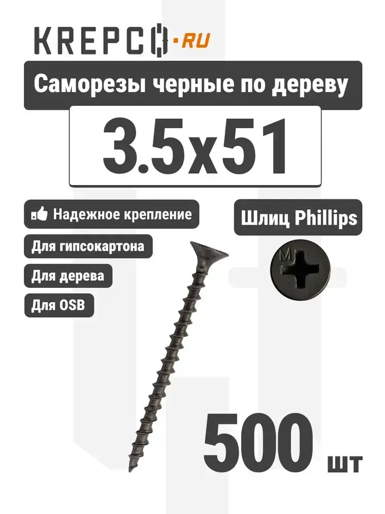 Саморезы по дереву, черные, 3.5 х 51 мм (600 штук/1.3 кг)