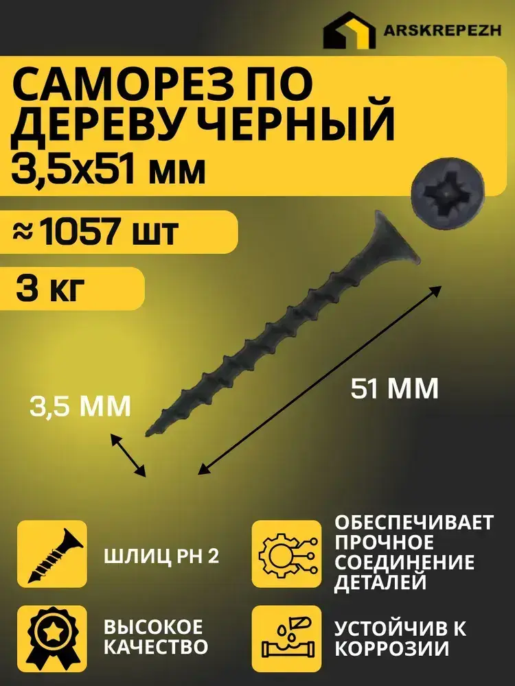 Саморезы по дереву черные 3,5 х 51мм (3 кг) фосфатированные
