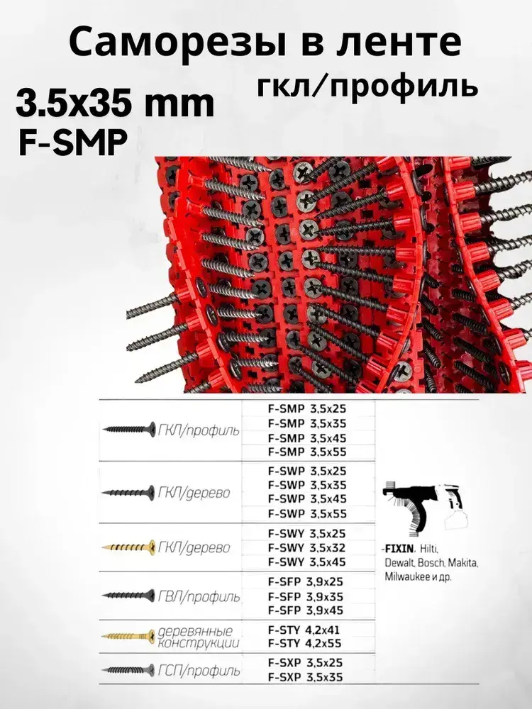 Саморезы по дереву в ленте универсальные 3.5х35мм. 1000шт