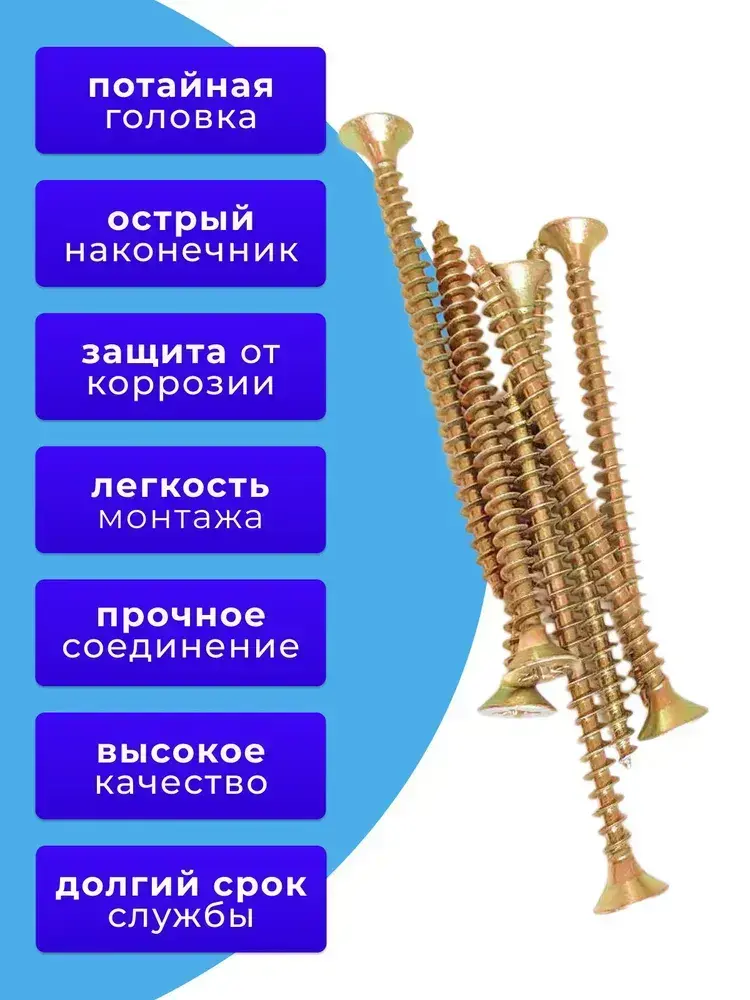 Саморезы по дереву желтые 5х70 жёлтый цинк. 1кг