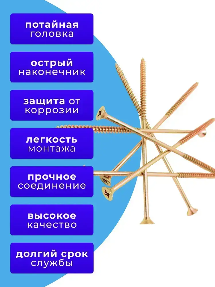 Саморезы по дереву желтые 6х160 жёлтый цинк. 1кг