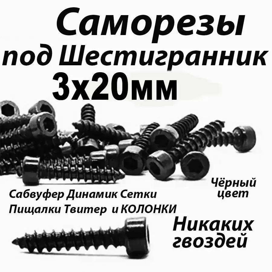 Саморезы под шестигранник 3 х 20 мм черные 32 шт для динамиков акустики размер шестигранника 2.5 мм. автомобильные набор для колонок твитеров и сабвуфер. Саморез для динамиков