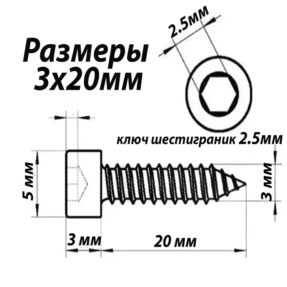 Саморезы под шестигранник 3 х 20 мм черные 64 шт для динамиков акустики автомобильные (размер шестигранника 2.5 мм.) набор для колонок твитеров и сабвуфер. Саморез для динамиков