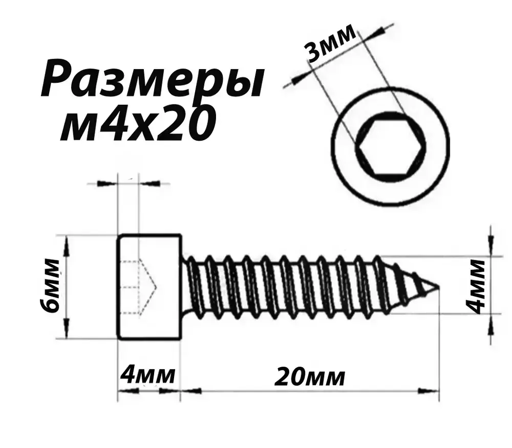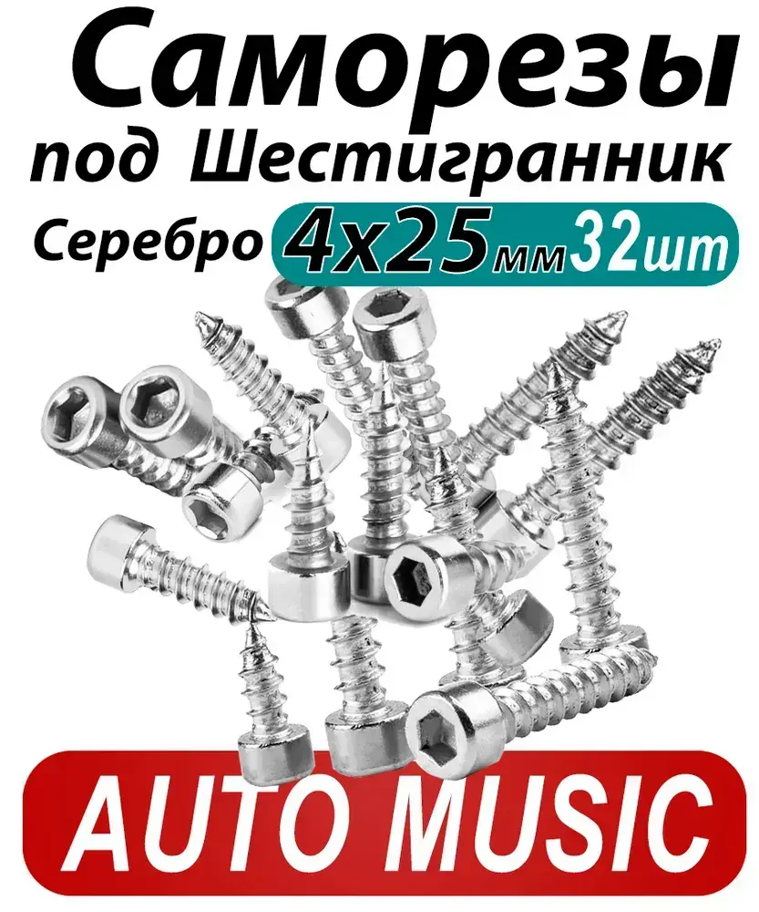 Саморезы под шестигранник 4 х 20 мм серебро 32 шт для динамиков акустики автомобильные набор (размер шестигранника 3 мм.)(HEX 3) для колонок твитеров и сабвуфер. Саморез для динамиков