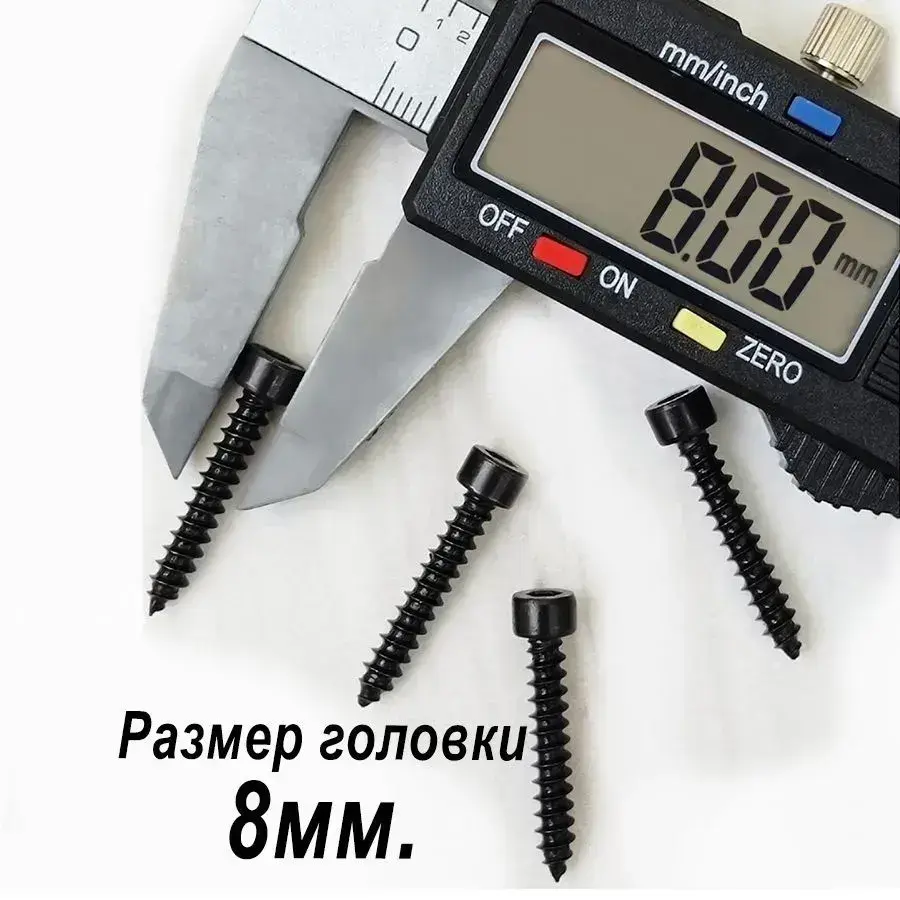 Саморезы под шестигранник 5 х 35 мм черные 32 шт для динамиков акустики автомобильные набор (размер шестигранника 4 мм.) (HEX 4) для колонок твитеров и сабвуфер. Саморез для динамиков