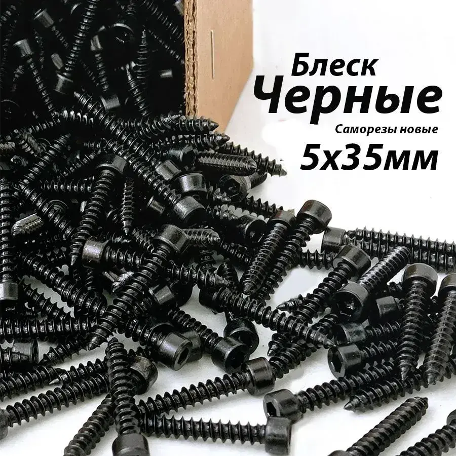 Саморезы под шестигранник 5 х 35 мм черные 64 шт для динамиков акустики автомобильные набор (размер шестигранника 4 мм.)(HEX 4) для колонок твитеров и сабвуфер. Саморез для динамиков