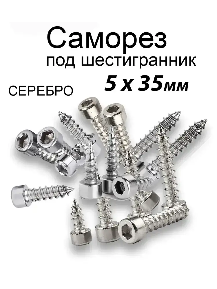 Саморезы под шестигранник 5 х 35 мм серебро 32 шт для динамиков акустики автомобильные набор (размер шестигранника 3 мм.)(HEX 3) для колонок твитеров и сабвуфер. Саморез для динамиков