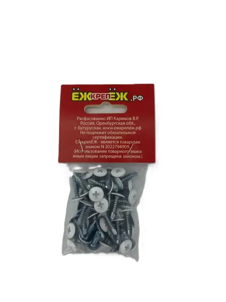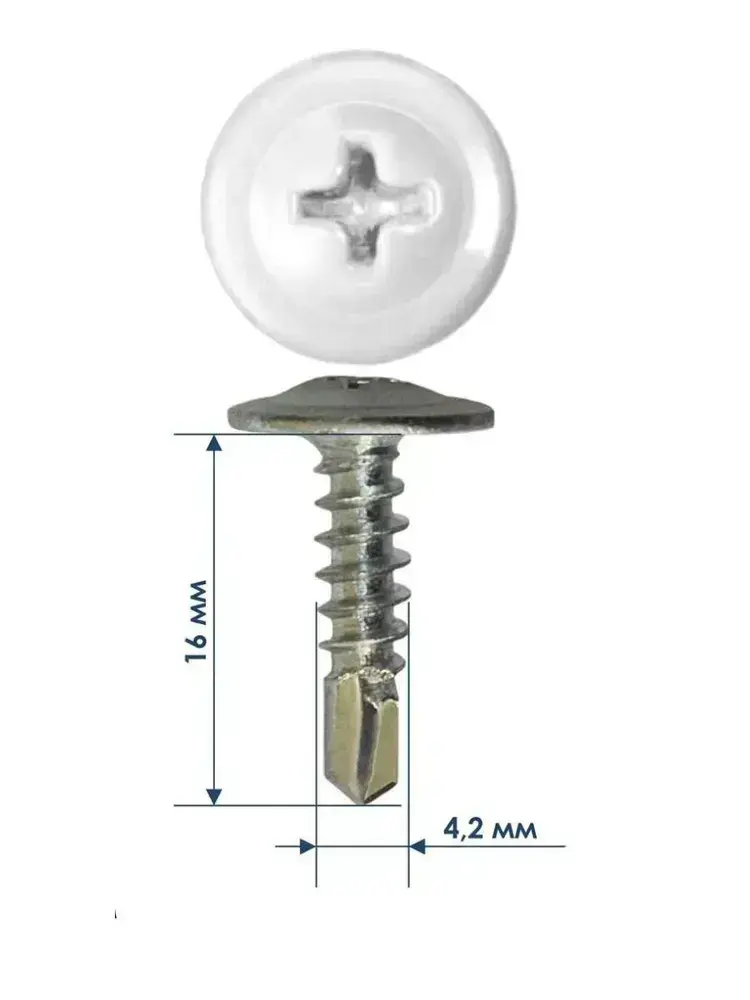 Саморезы прессшайба 4,2х16 мм сверло Белый RAL-9003 (50 шт) ЁЖкрепЁЖ.