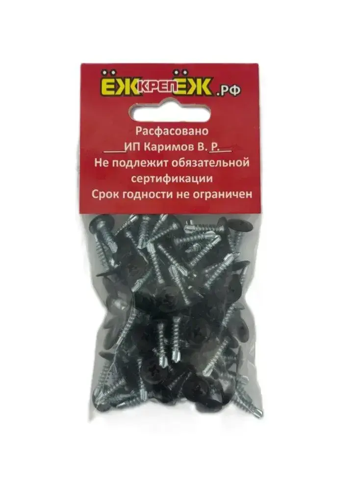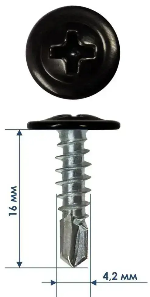 Саморезы прессшайба 4,2х16 мм сверло Черный RAL-9005 (100 шт.) ЁЖкрепЁЖ.