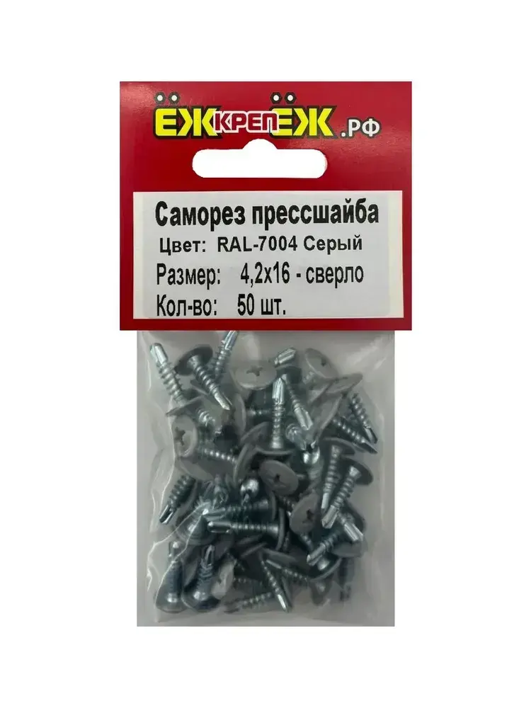 Саморезы прессшайба 4,2х16 мм сверло Серый RAL-7004 (50 шт) ЁЖкрепЁЖ.