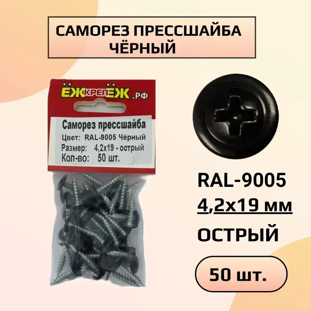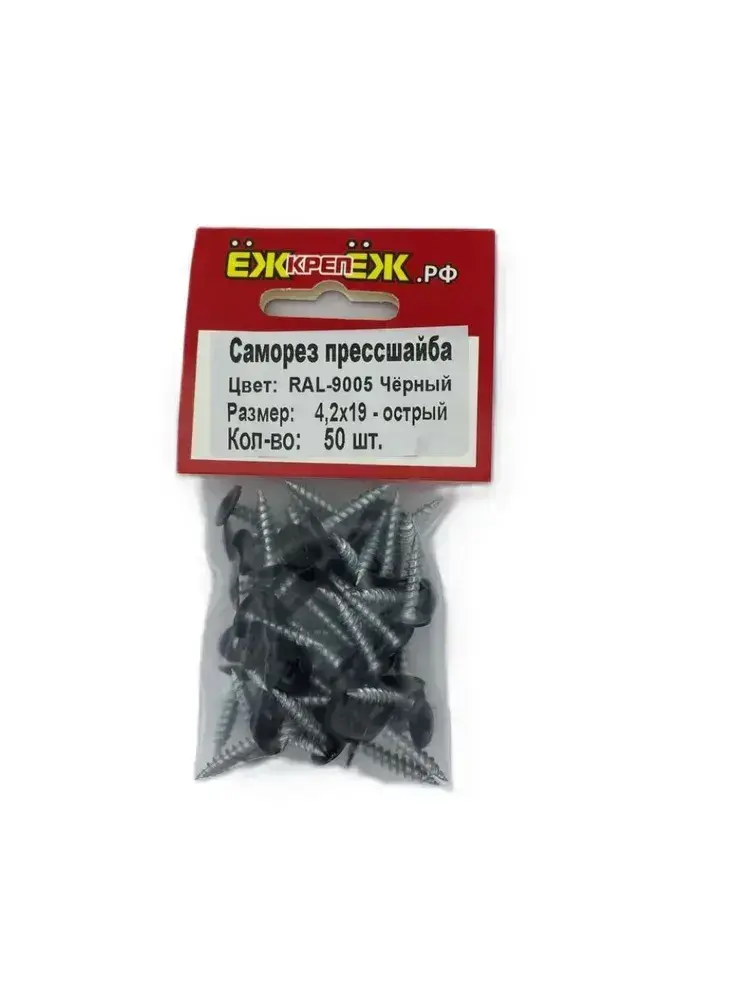 Саморезы прессшайба 4,2х19 мм острый Черный RAL-9005 (50 шт)