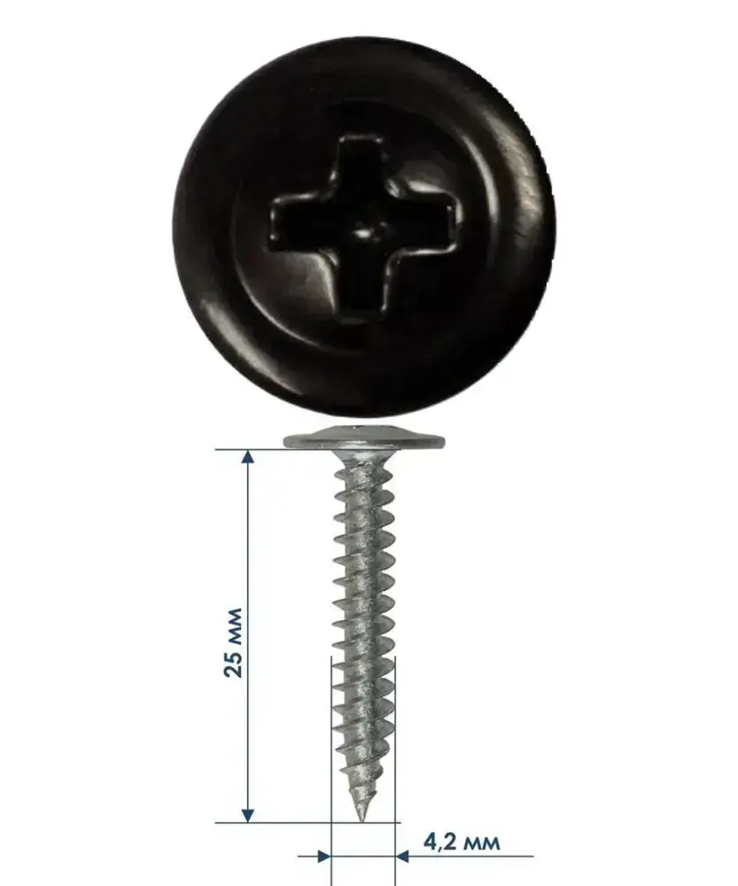 Саморезы прессшайба 4,2х25 мм острый Черный RAL-9005 (50 шт) ЁЖкрепЁЖ.