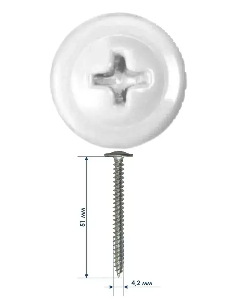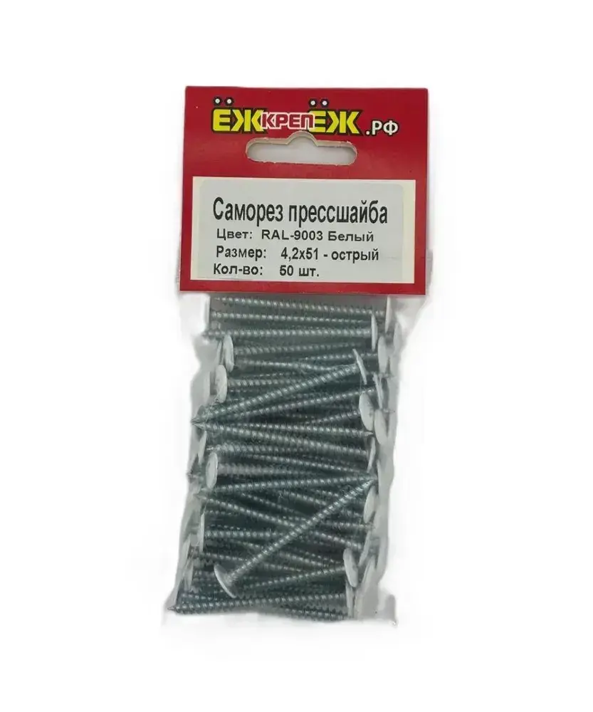 Саморезы прессшайба 4,2х51 мм острый Белый RAL-9003 (50 шт) ЁЖкрепЁЖ.