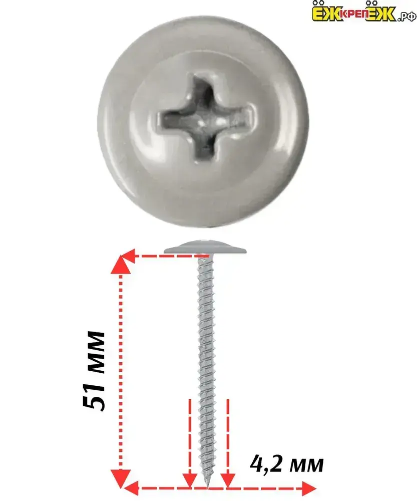 Саморезы прессшайба 4,2х51 мм острый Серый RAL-7004 (50 шт) ЁЖкрепЁЖ.