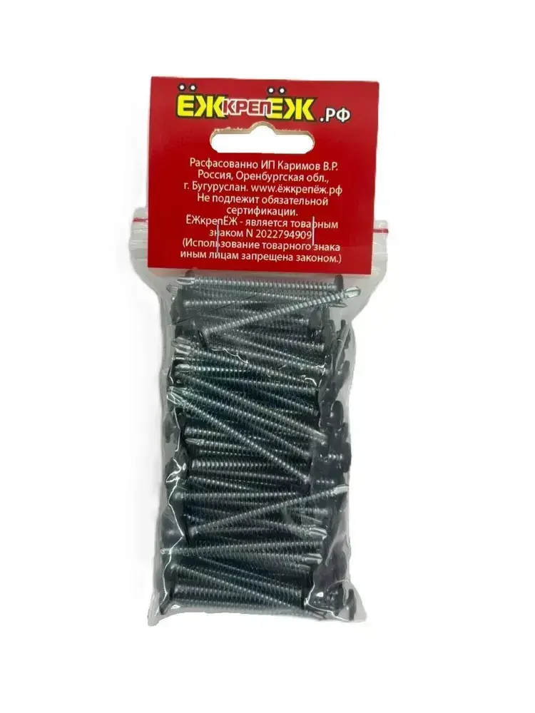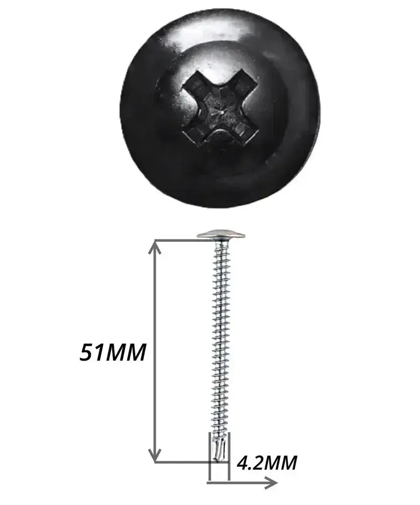 Саморезы прессшайба 4,2х51 мм сверло Черный RAL-9005 (100 шт) ЁЖкрепЁЖ.