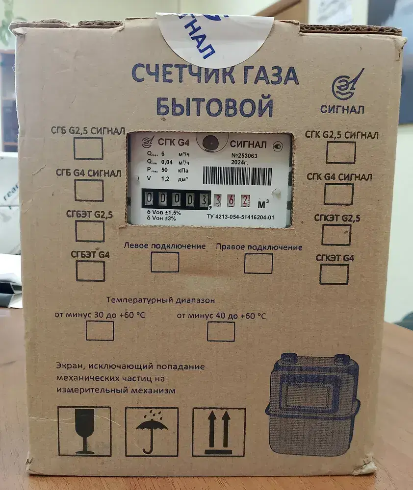Счетчик газа СГК G4, М30х2, правый, верхний подвод (аналог счетчика СГК г. Владимир) 2024-2025 г.в.