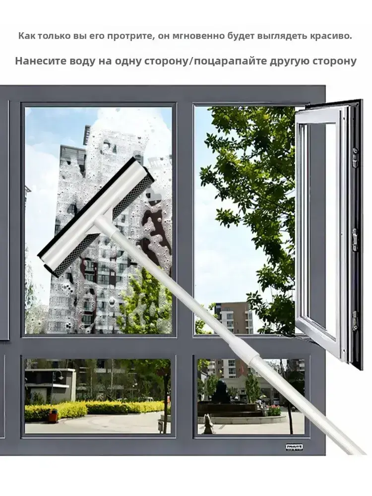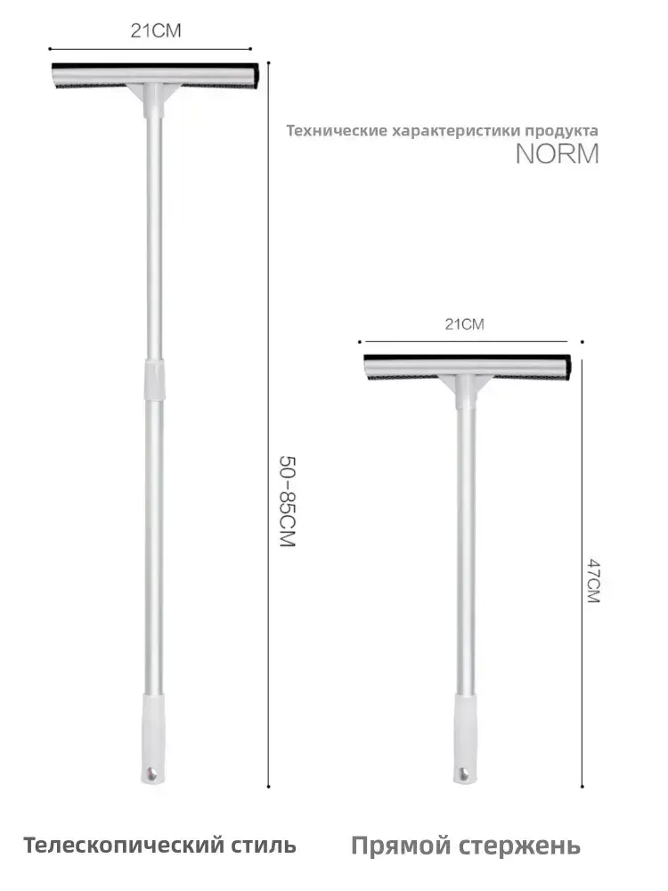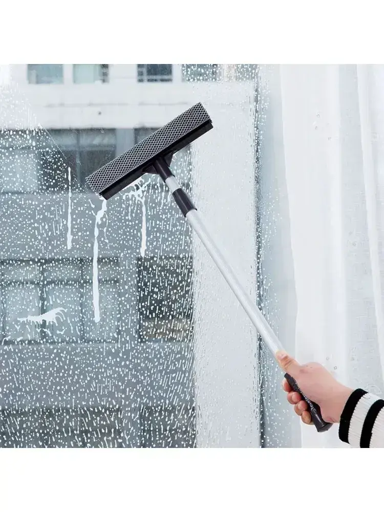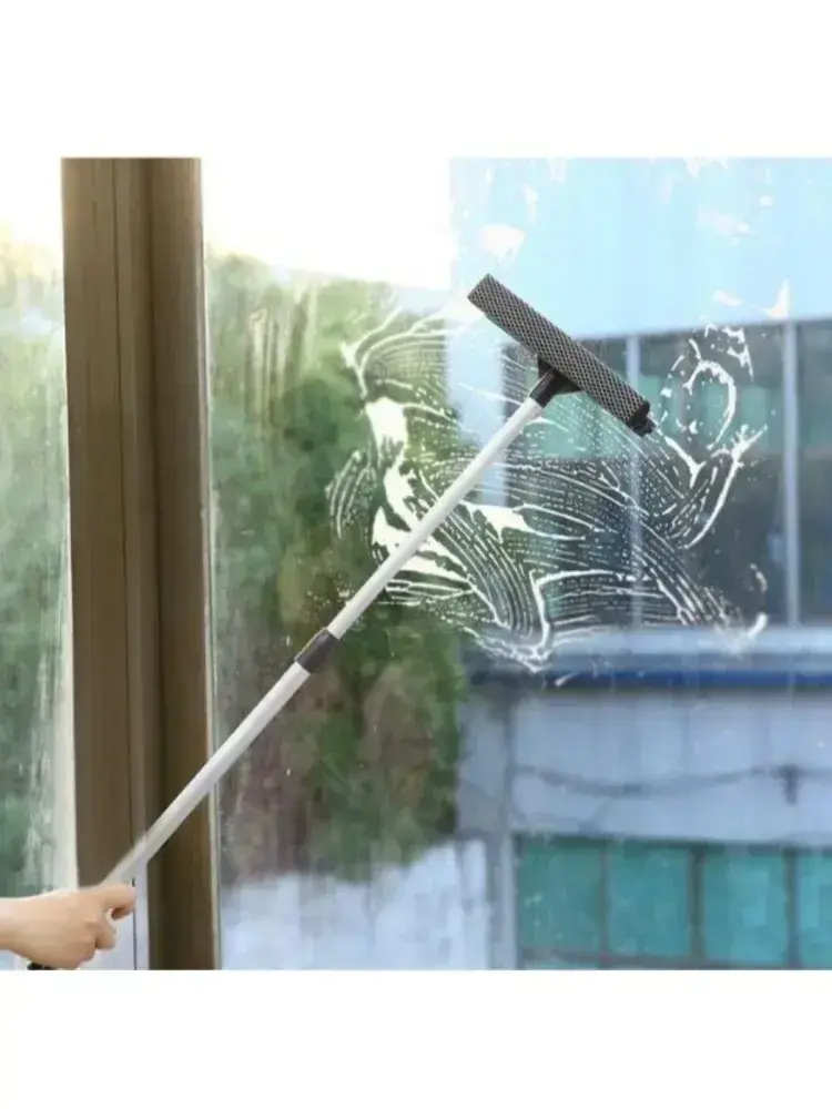 Щетка для мытья окон, стеклоочиститель с телескопической ручкой 50-85 см, стеклоочиститель с резиновым скребком и губкой
