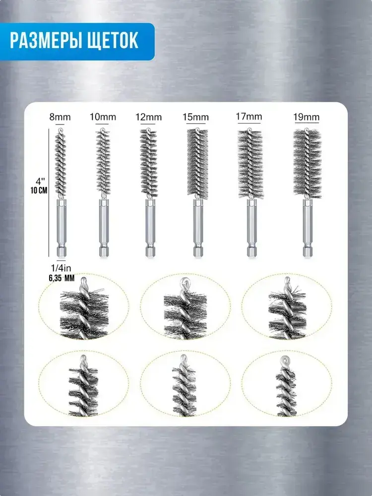 Щетка для скважин из нержавеющей стали для шуруповерта, для полировки и чистки