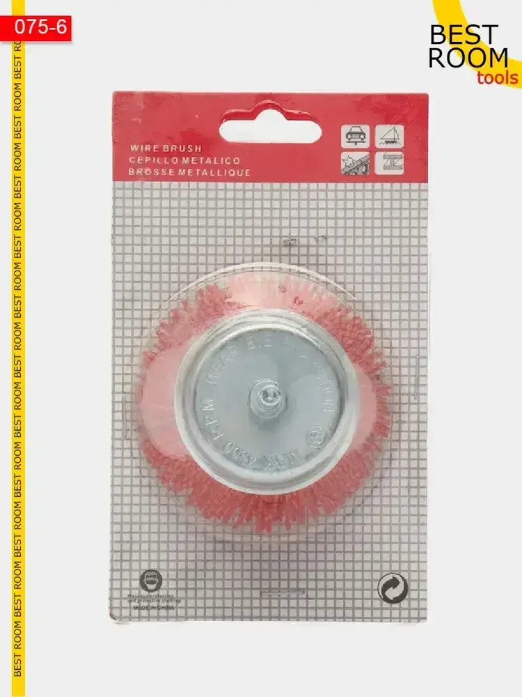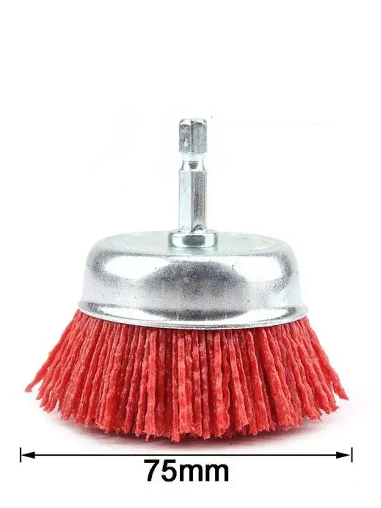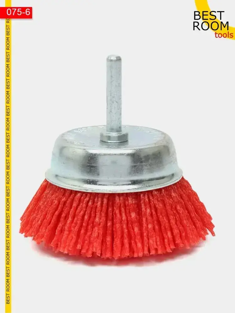 Щетка нейлоновая для дрели, Корщетка "чашка" насадка на дрель нейлоновая 75 х 6 мм