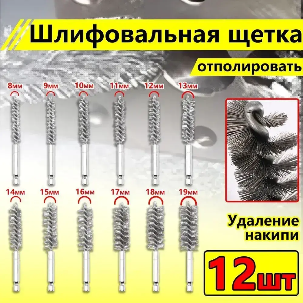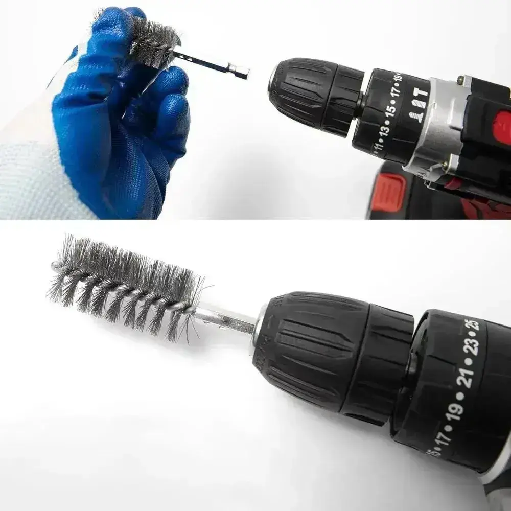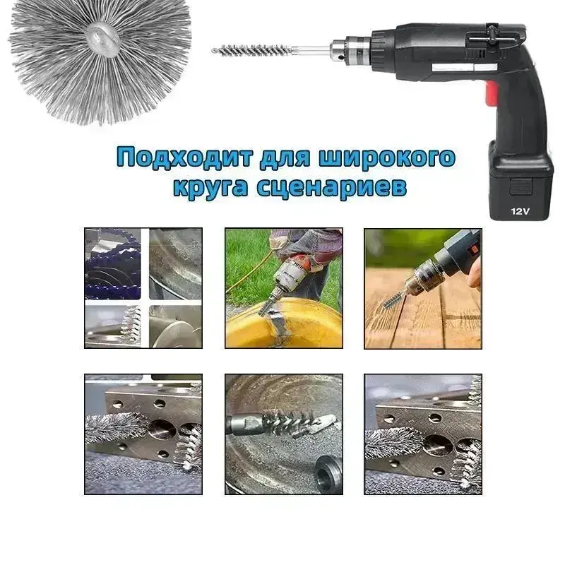 Щетка скважины нержавеющей стали с шестигранной ручкой для дрели и шуруповёрта 12 шт - для удаления ржавчины и полировки поверхностей / снятия заусенцев