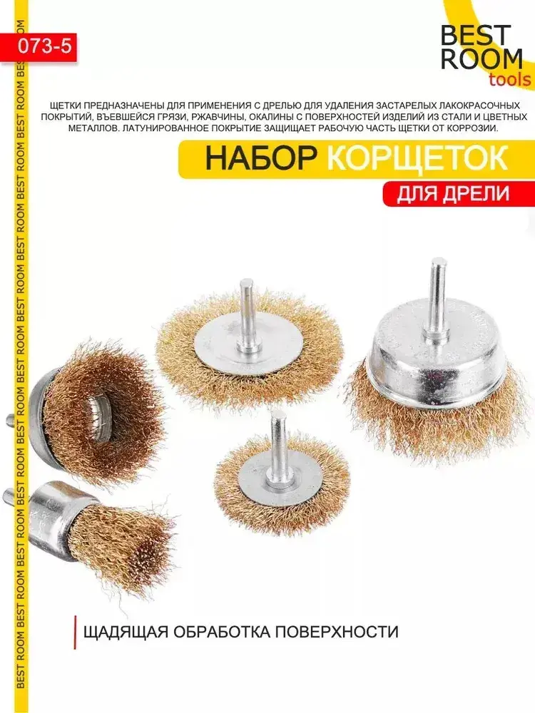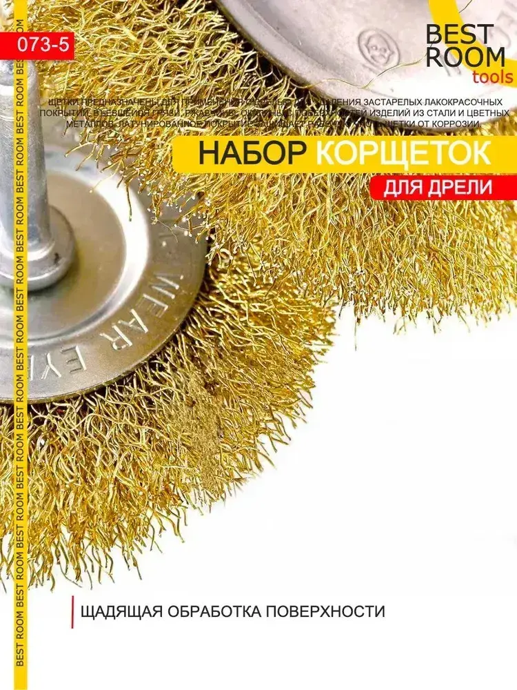 Щетки металлические для дрели, Набор щеток для зачистки от краски и ржавчины, шлифования, витая стальная латунированная проволока