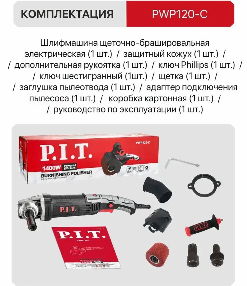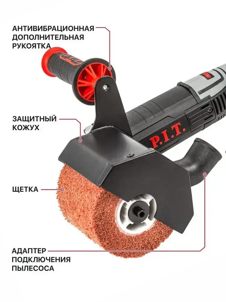 Щеточная шлифмашина P.I.T. PWP120-C, 120х100мм, 1400Вт, 700-4200об/мин, нейлон щетка, двойн. пылезащита