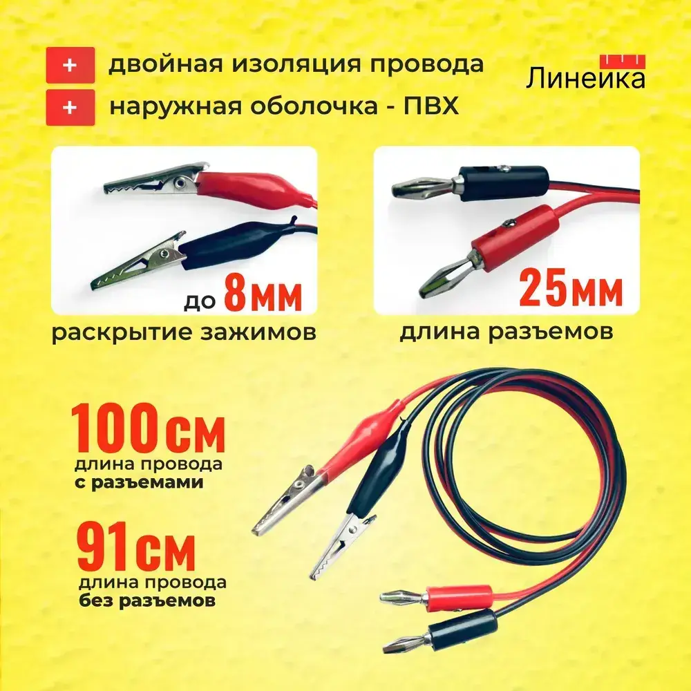 Щупы крокодилы универсальные для мультиметра тестера PVC с длиной провода 1м; 20 жил, с зажимами