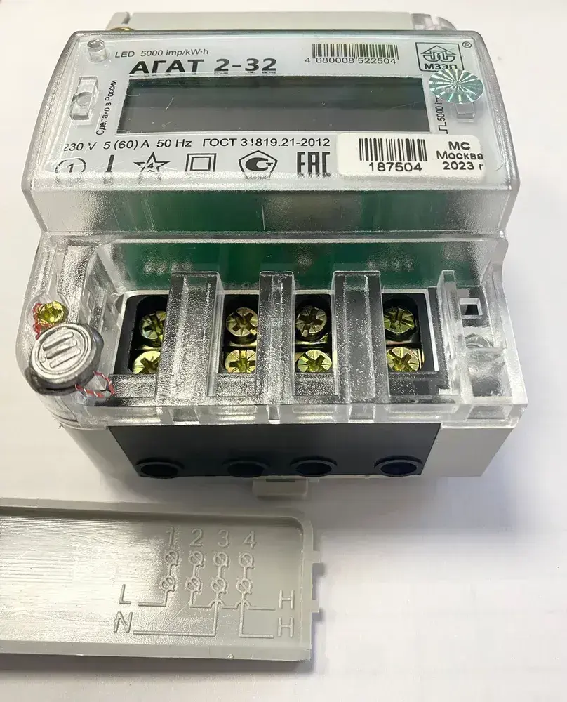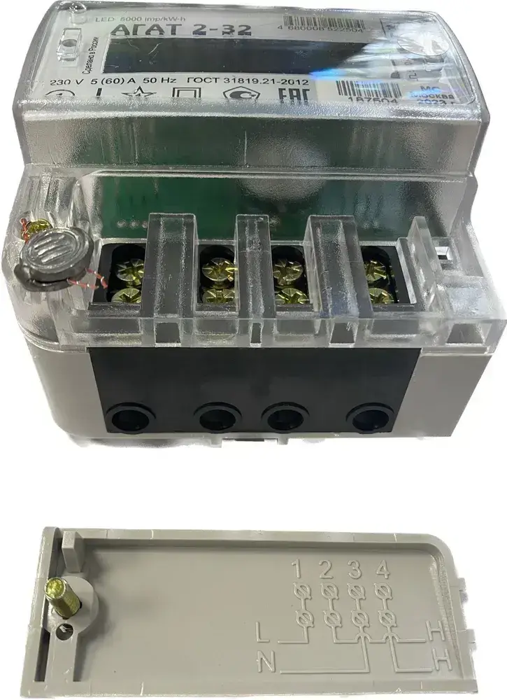 Счётчик электроэнергии АГАТ 2-32 (тариф: Екатеринбург) время Москва+2часа Т1 (7-23часов) Т2 (23-7 часов)