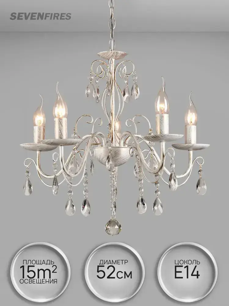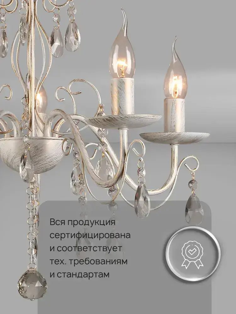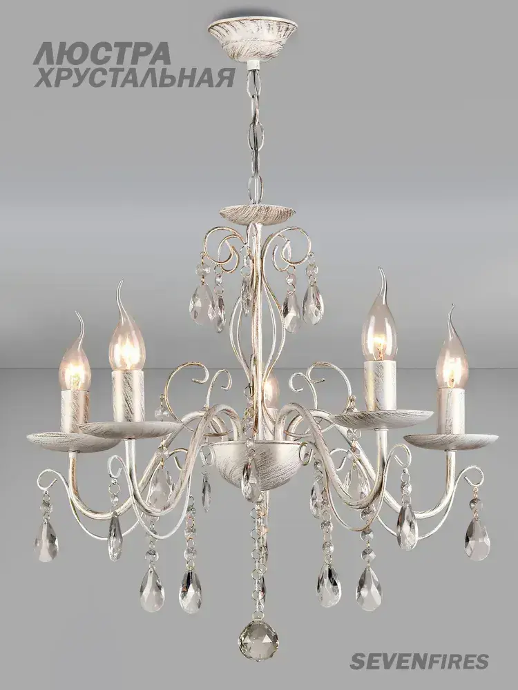 Семь Огней Люстра потолочная подвесная, белая с золотой патиной