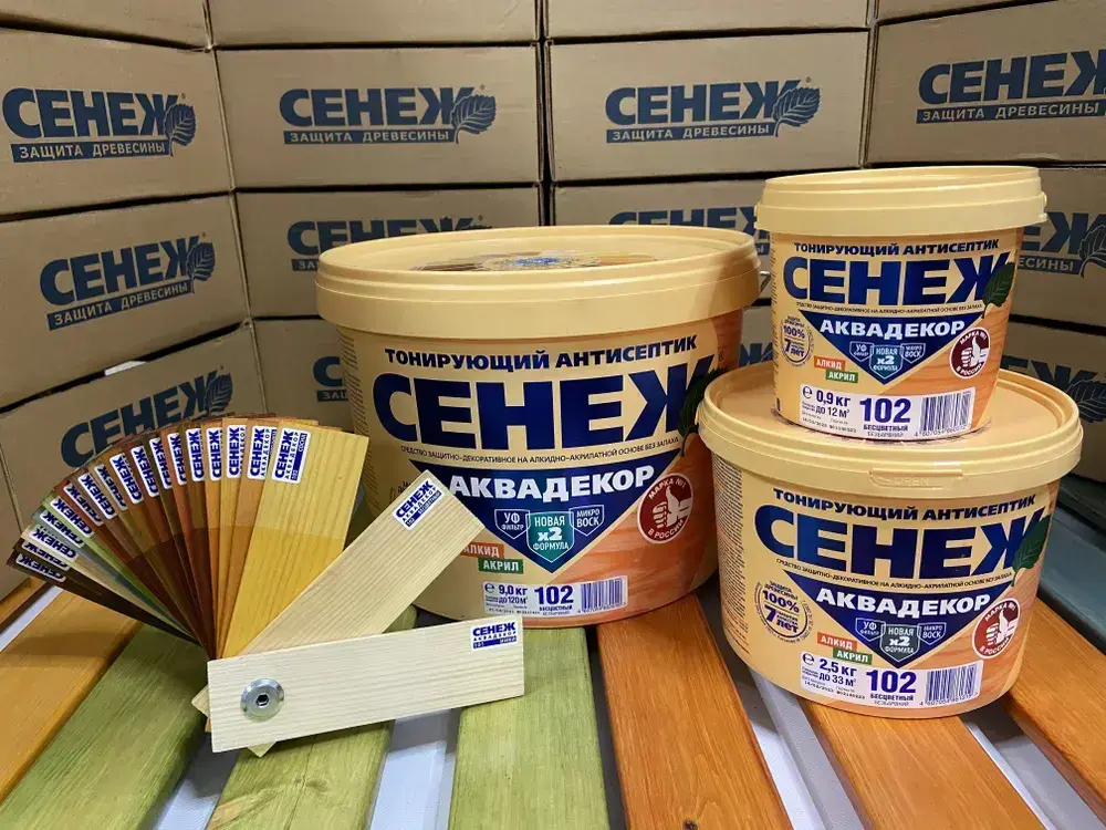 СЕНЕЖ Аквадекор Бесцветный 0.9 кг № 102 строительный антисептик