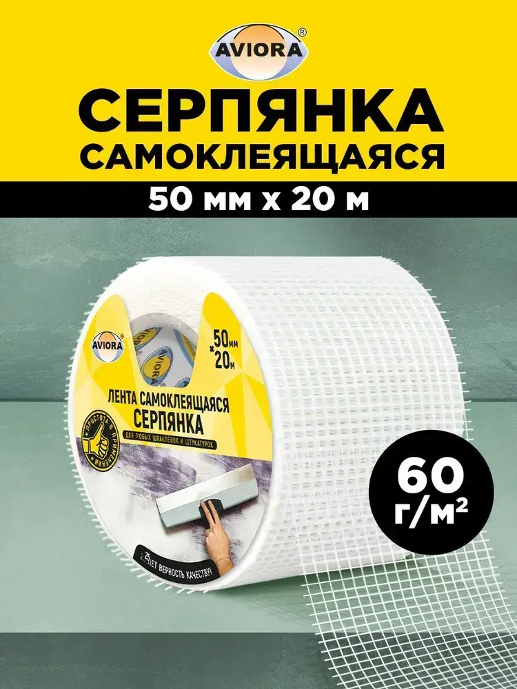 Серпянка самоклеящаяся / Лента клейкая Aviora, 50 мм * 20 м, 60 г/м2