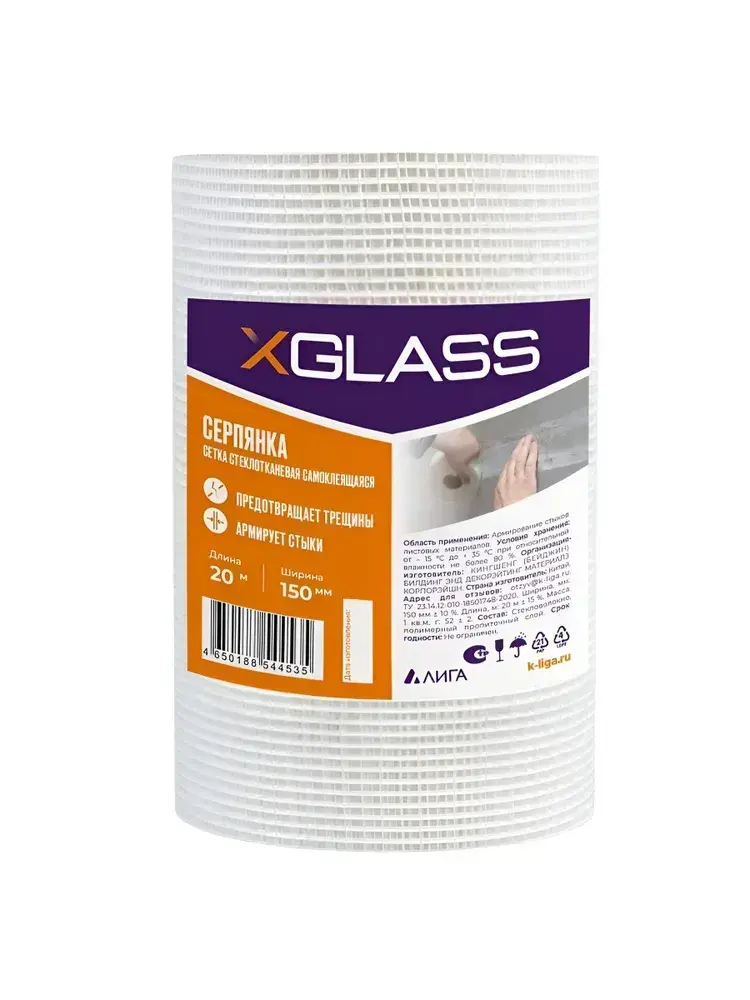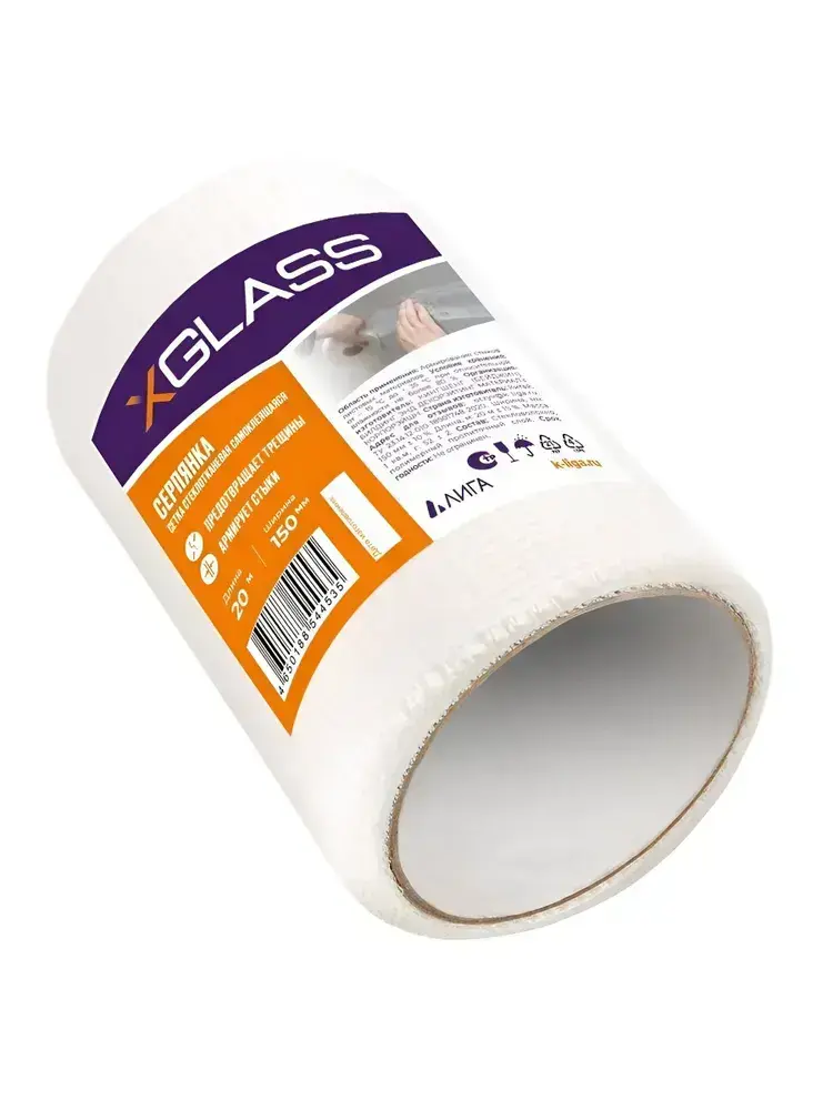 Серпянка самоклеющаяся 150мм х 20м, сетка самоклеющаяся, сетка клейкая, XGLASS