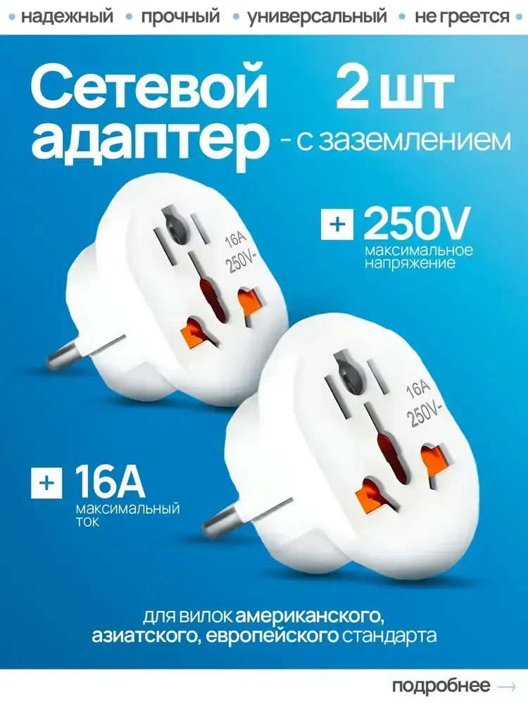 Сетевой адаптер для путешествий , переходник с китайской вилки на российскую , переходник на евровилку , белый Латунь! R74S 16А 2 штуки