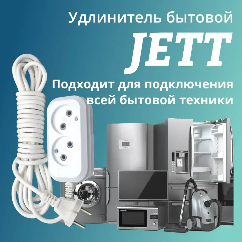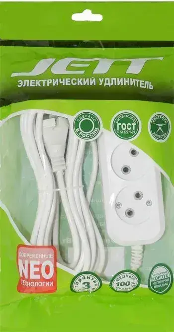 Сетевой электрический удлинитель 5 метров на 2 розетки без заземления JETT ( ДЖЕТТ) РС-2 ( ПВС ) , 2200Вт
