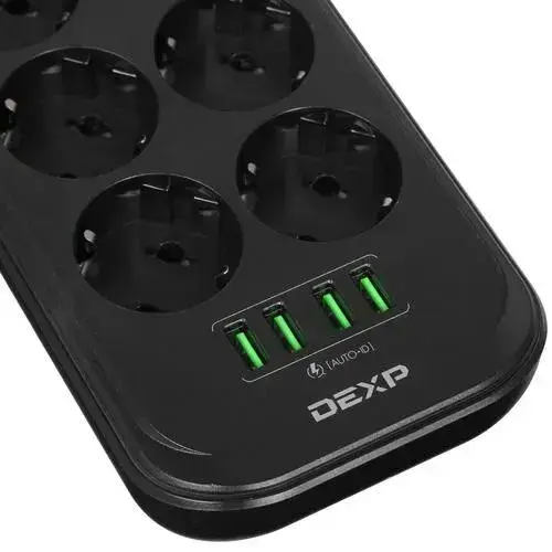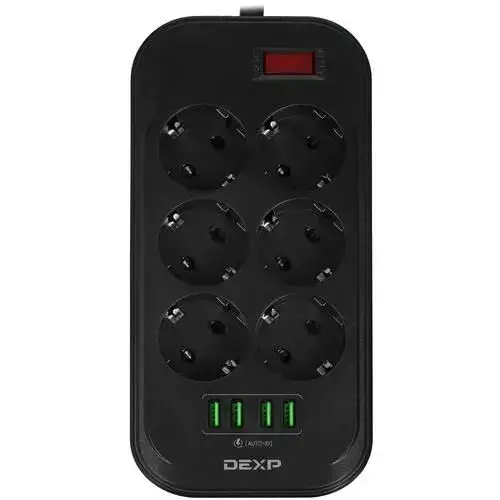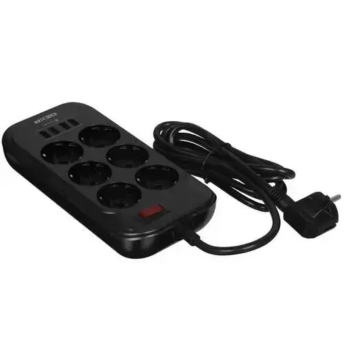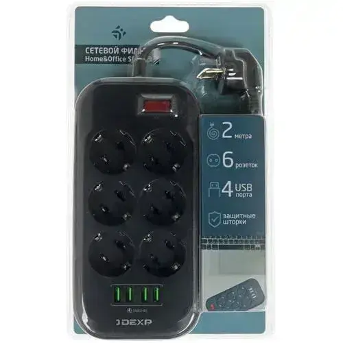 Сетевой фильтр, 6 розеток, длина шнура 2 м, цвет: черный